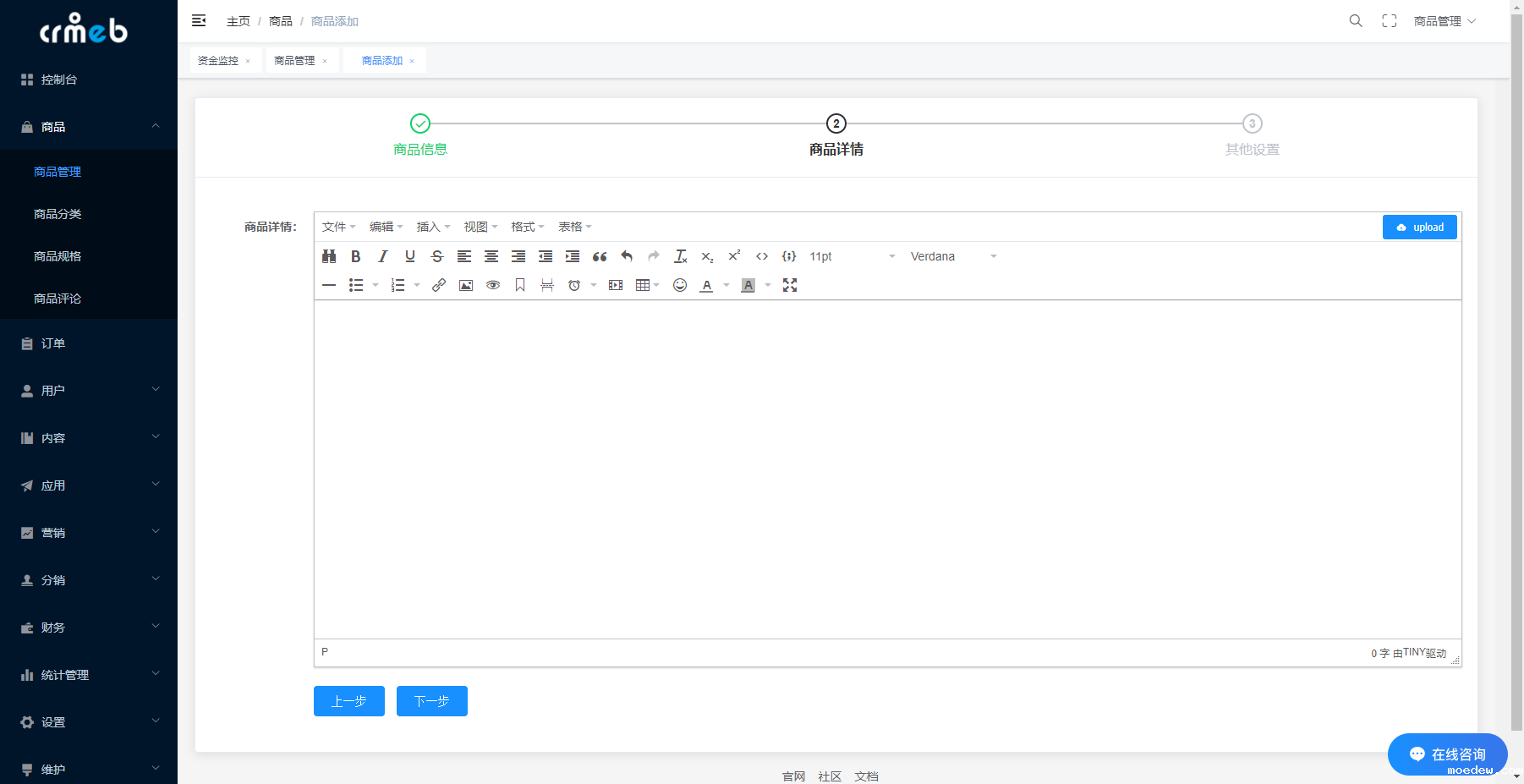 - 商品添加为分步添加,带 * 为必填选项
