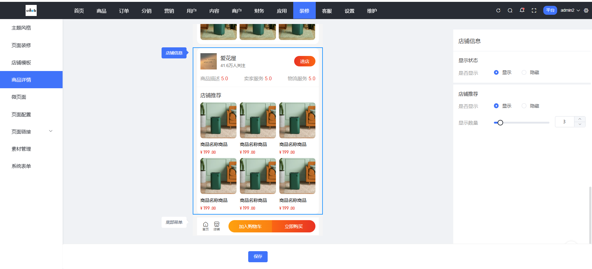 控制整个店铺信息模块是否显示,以及店铺推荐商品是否显示和显示的数量