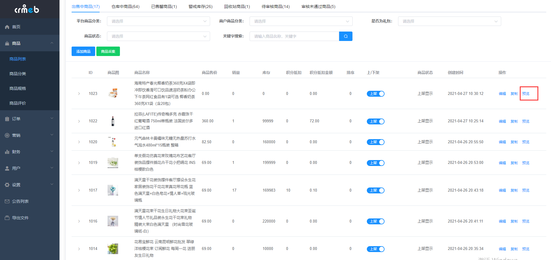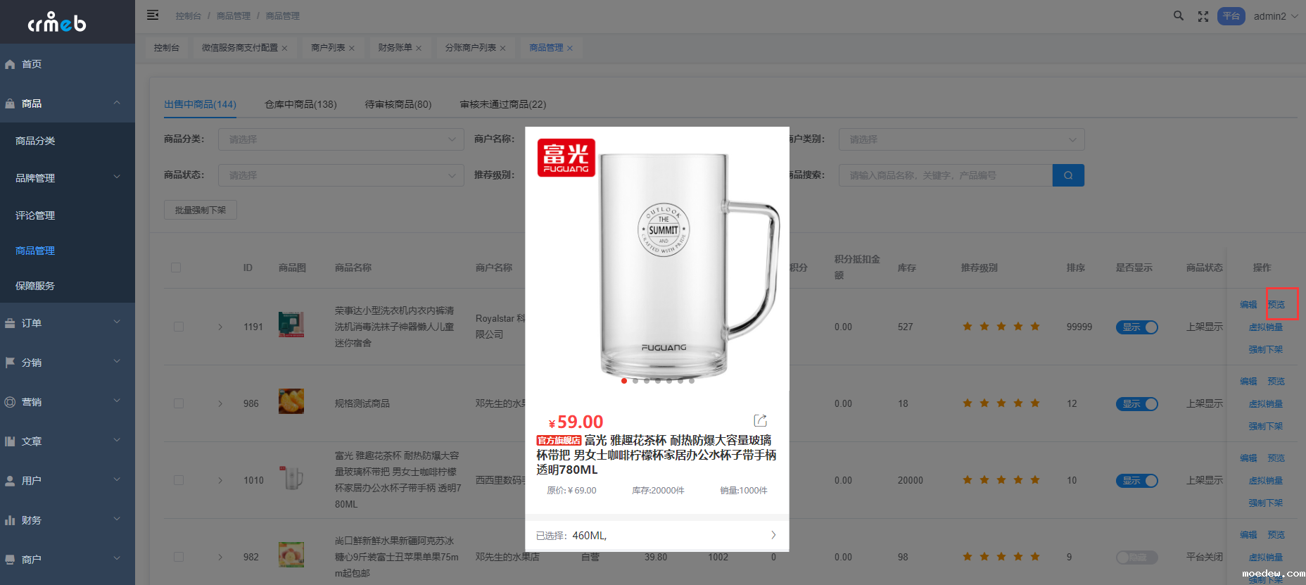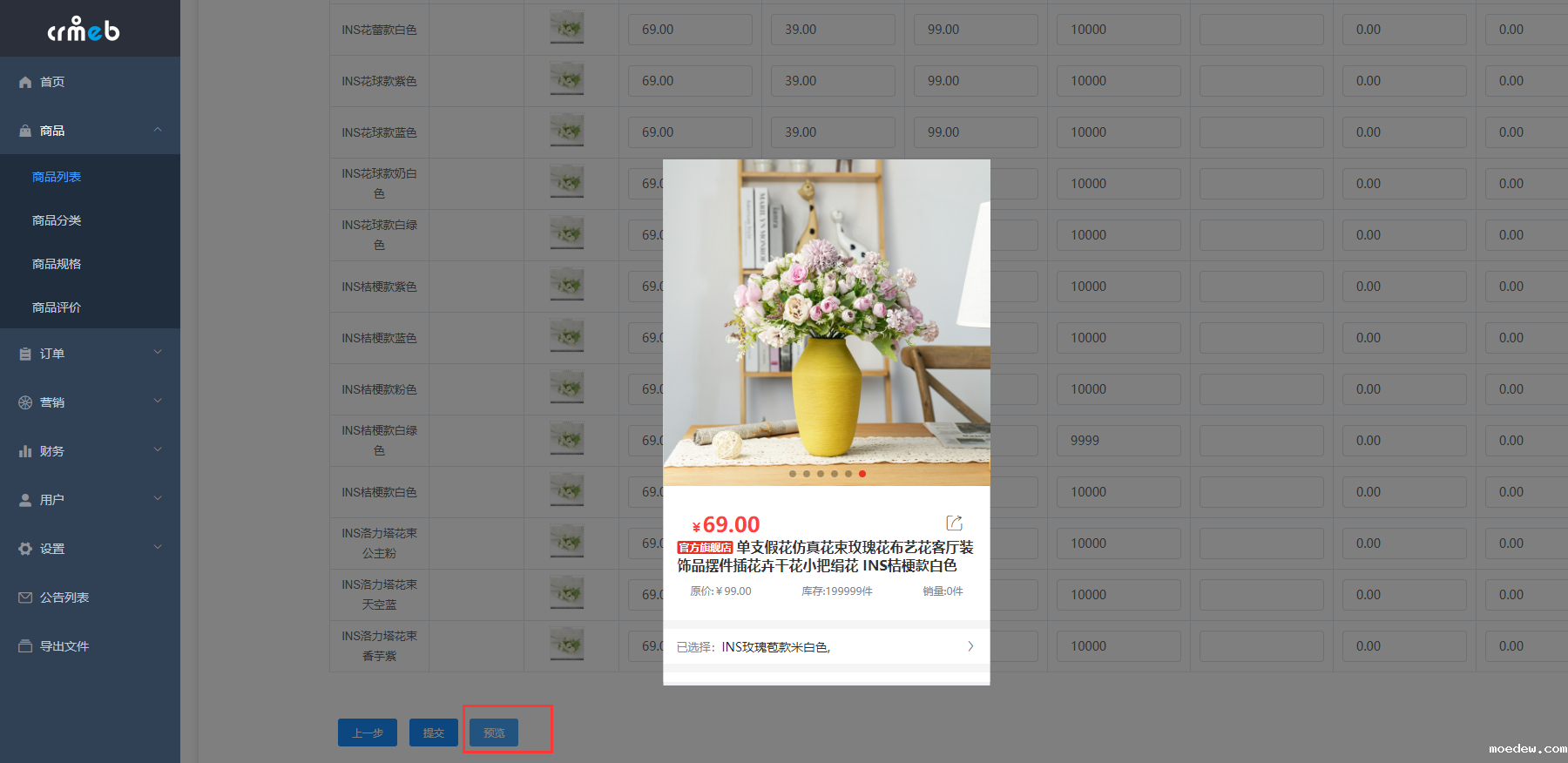商户后台商品编辑、添加页面及列表均可预览商品移动端效果