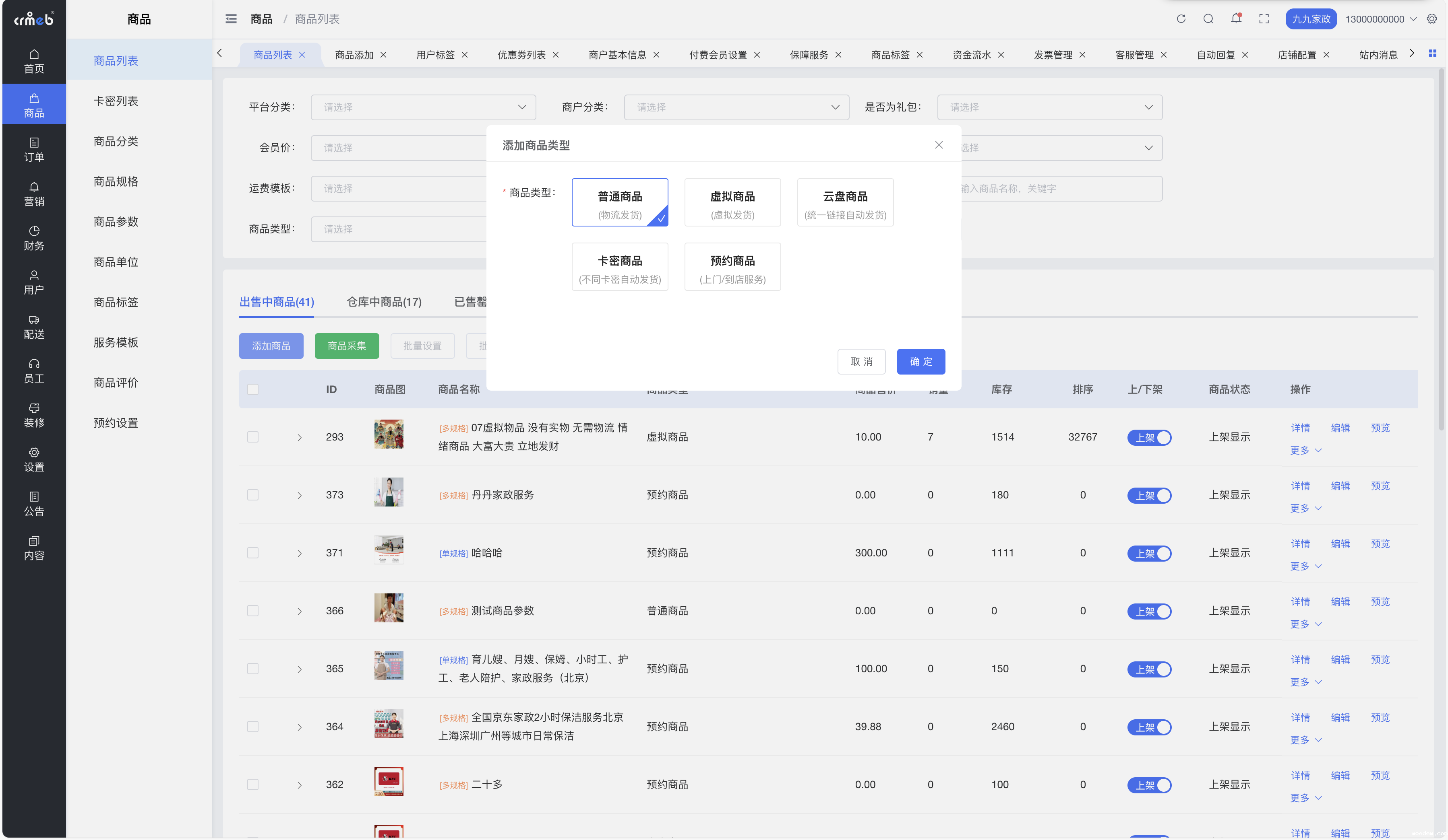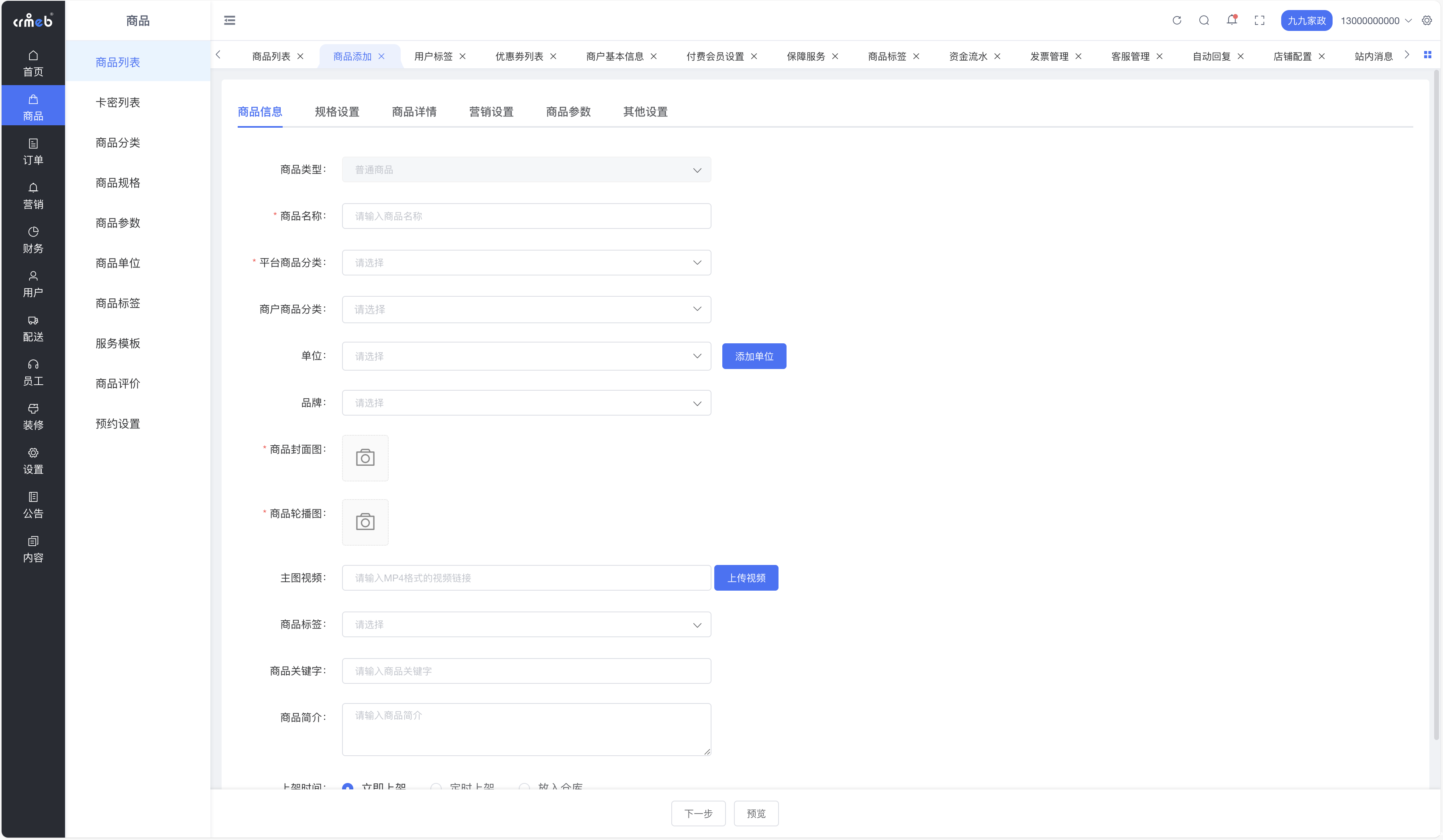 位置:商户后台>商品 > 商品列表 > 添加商品