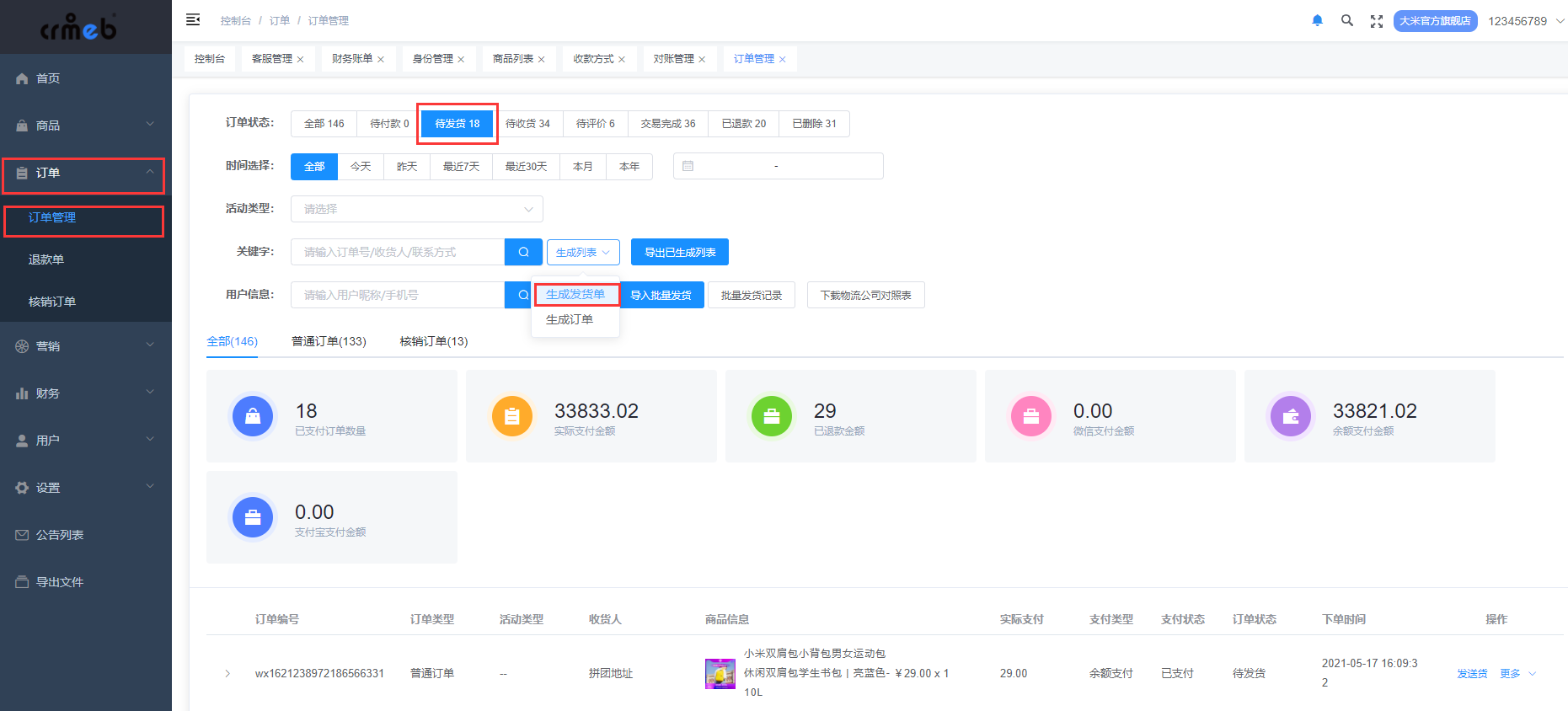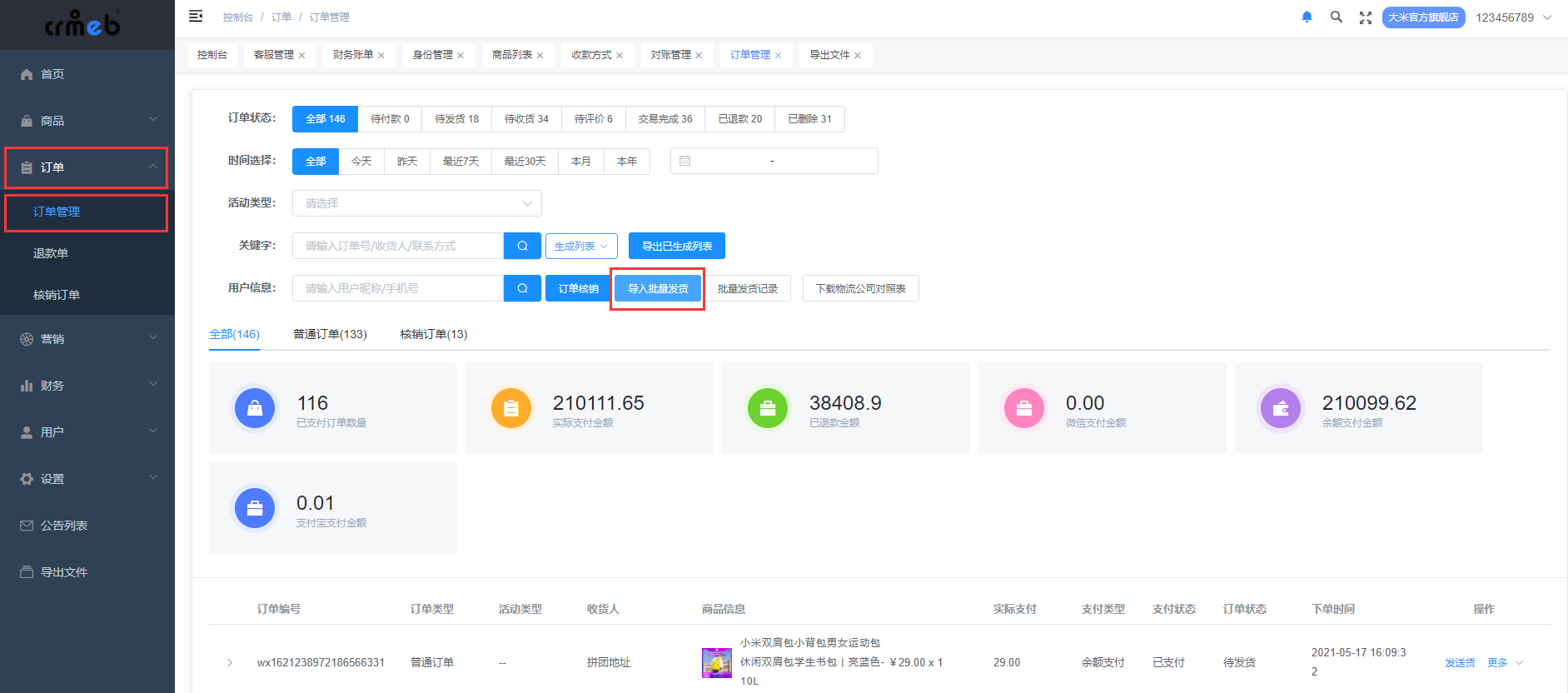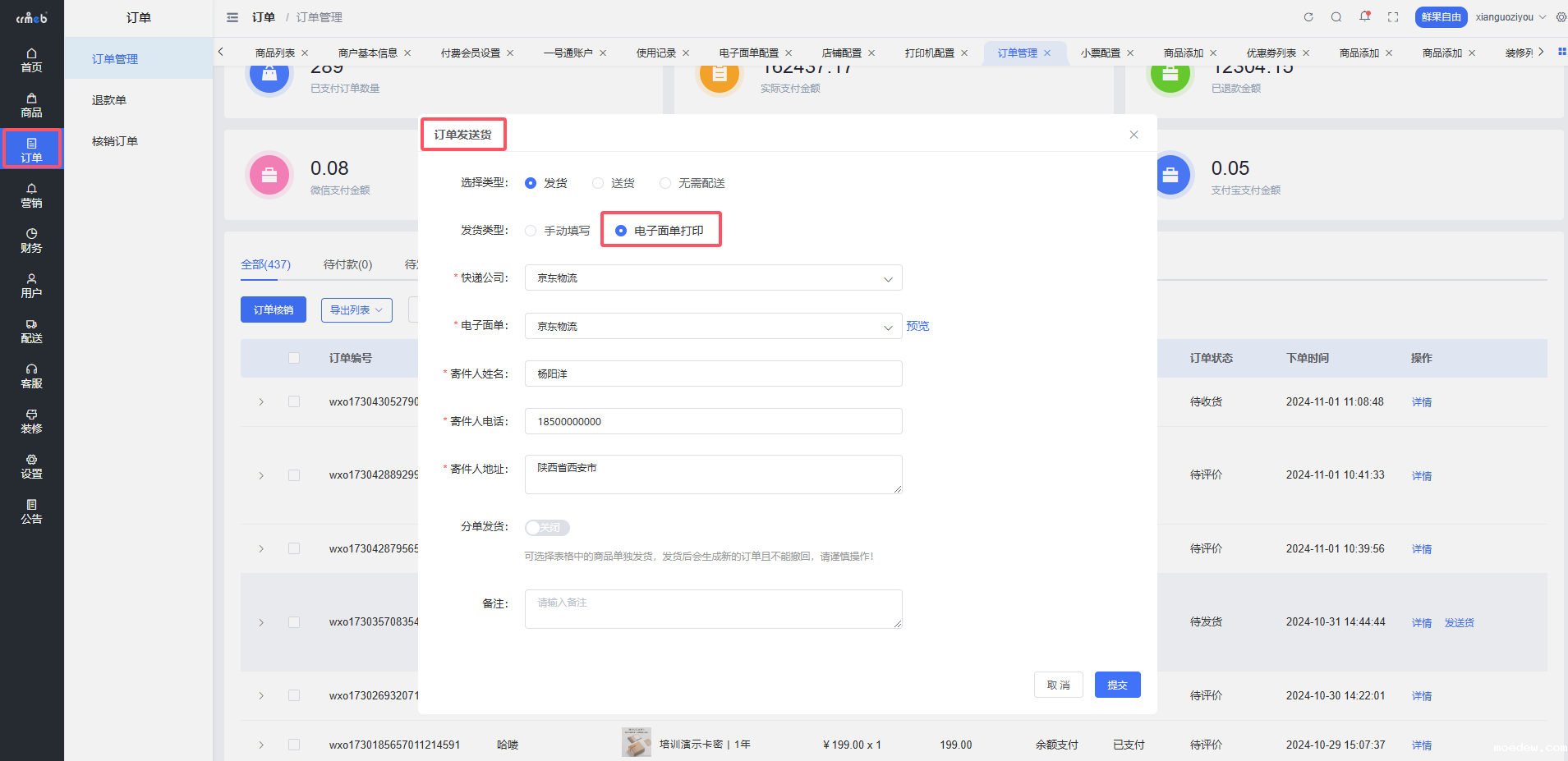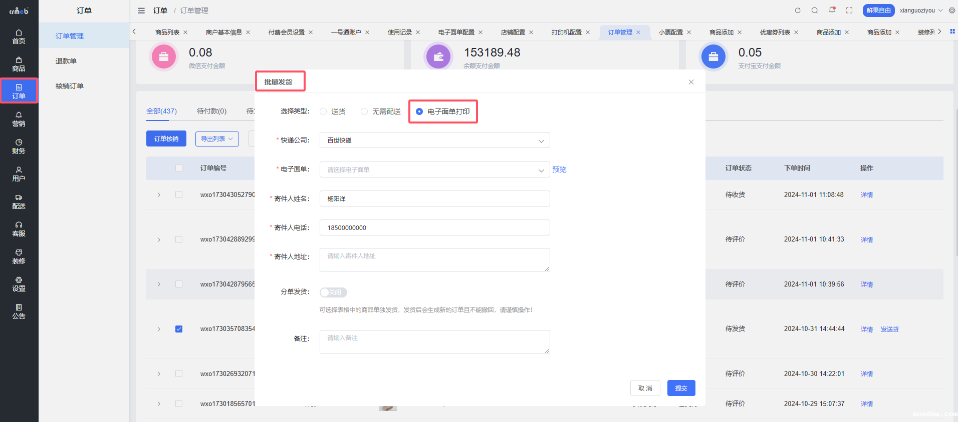 说明:电子面单功能需先开启, 具体设置详情请点击:https://doc.crmeb.com/mer/mer2/4400