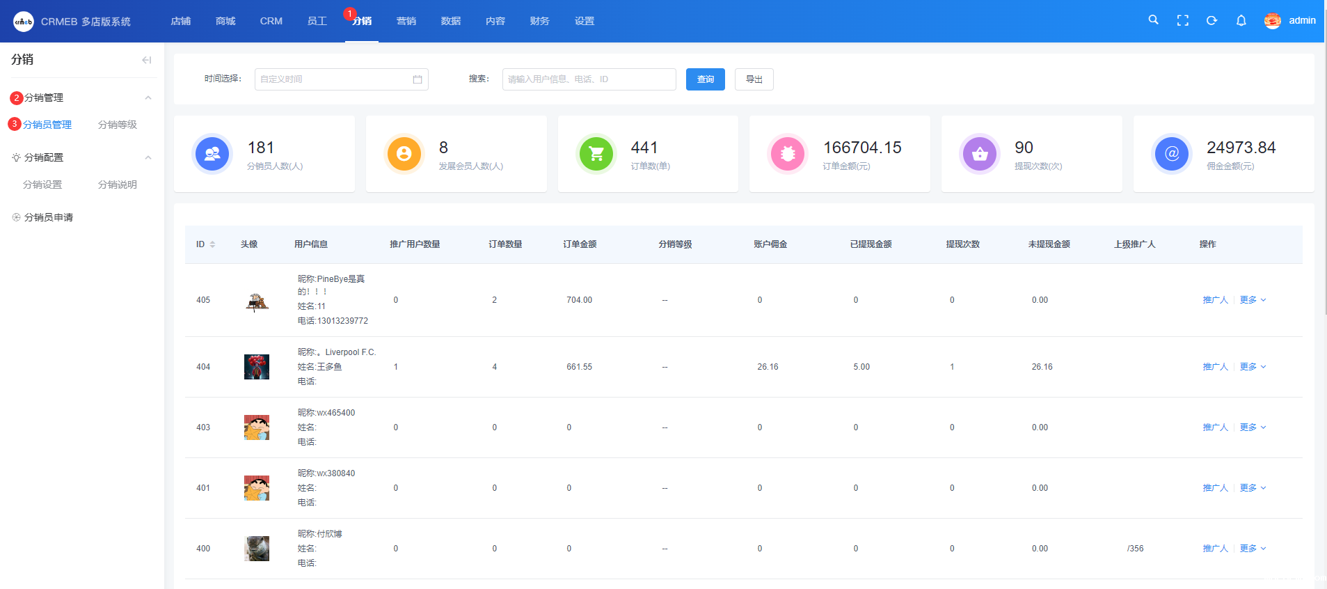 CRMEB分销为一级或二级分销;分销固定两级,后台能自己选择分销层级