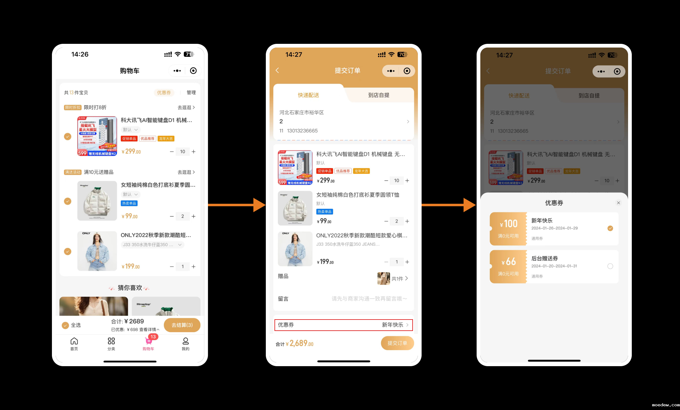用户购买必威betwayApp下载下单时,选择优惠券直接抵扣支付金额