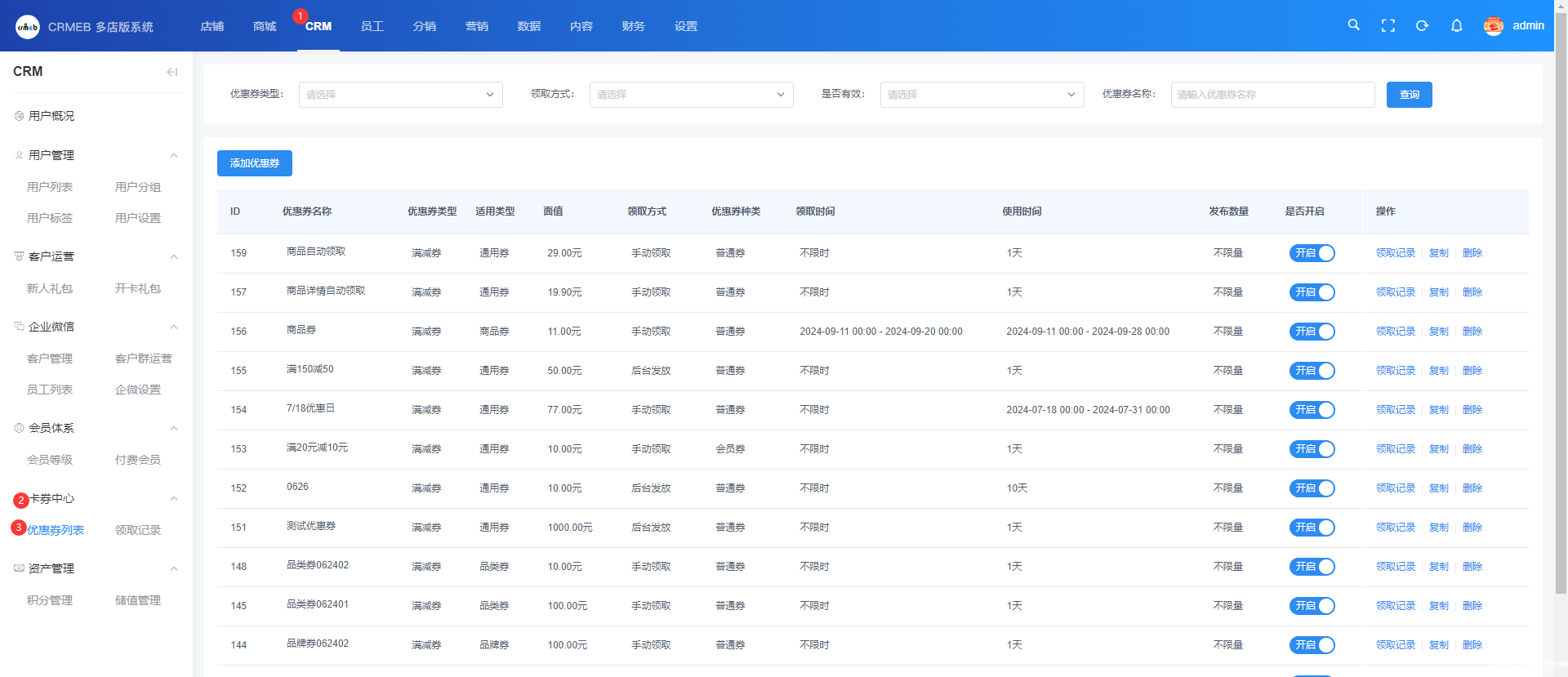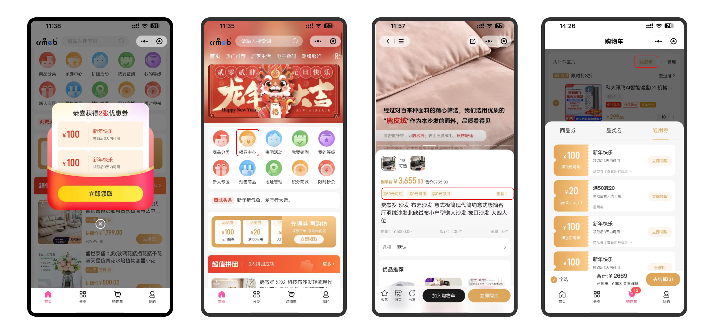 新人券:后台设置新用户赠送优惠券,新注册的用户可自动领取该优惠券。