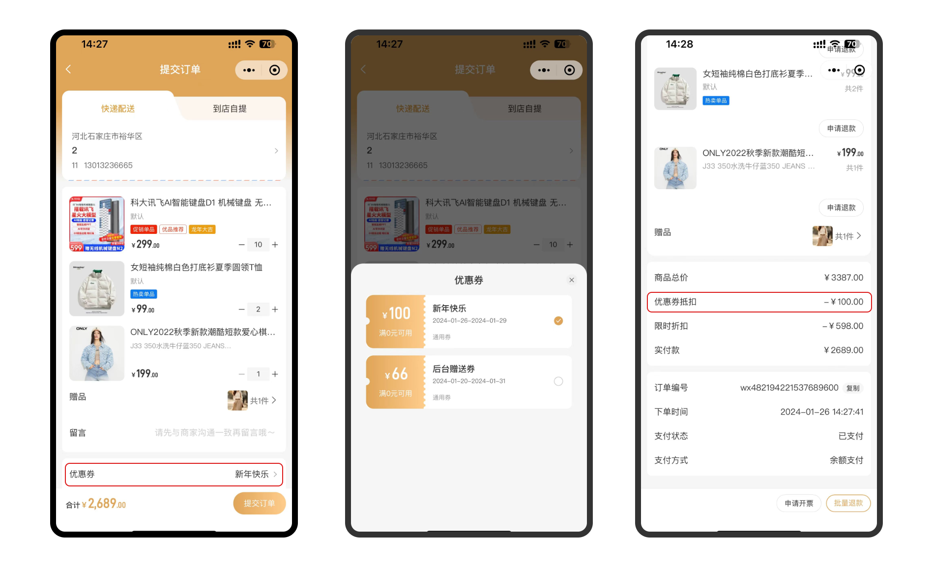 用户购买必威betwayApp下载下单时,选择优惠券直接抵扣支付金额