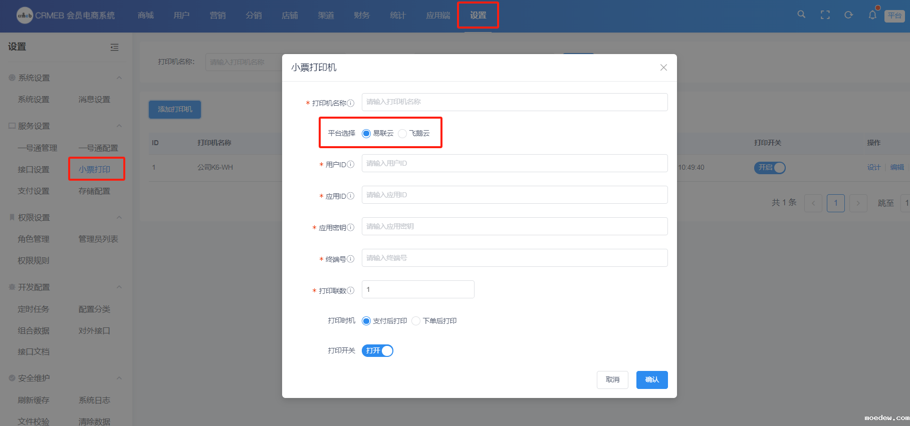 小票打印机配置