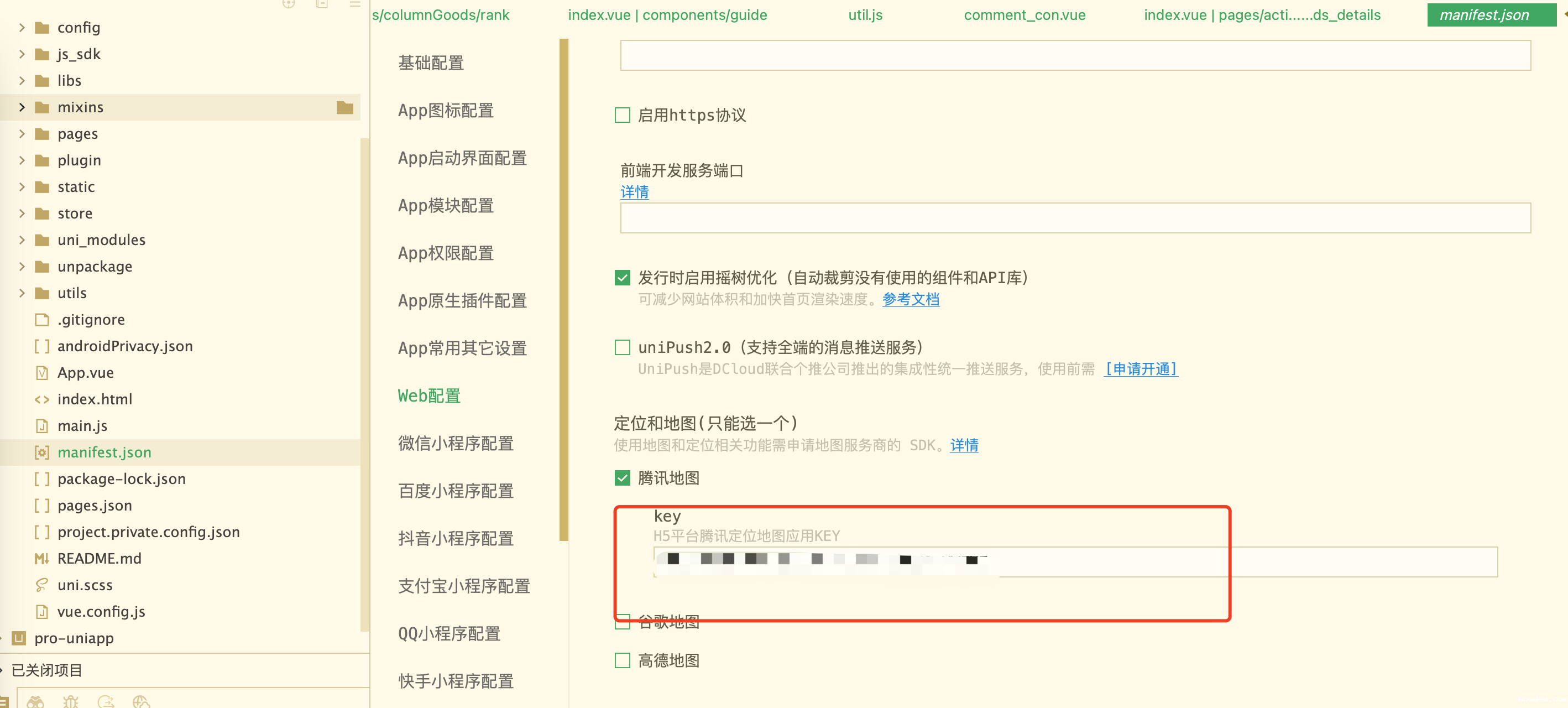使用地图配置前,请前往https://lbs.qq.com 进行申请