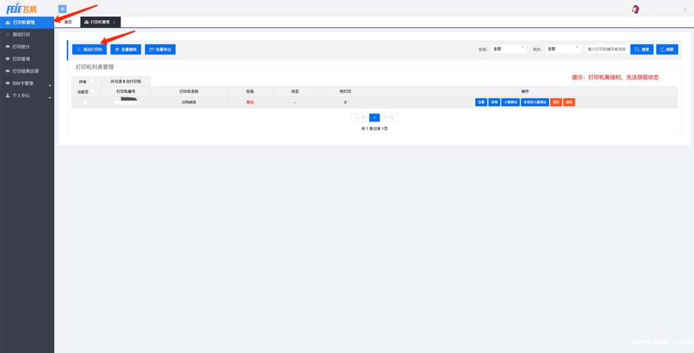 点击左侧打印机管理,添加打印机