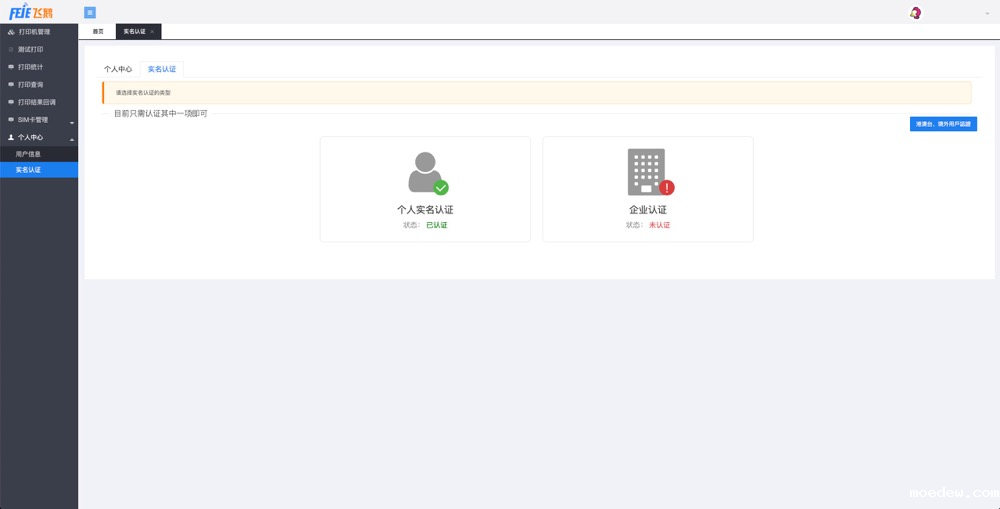 2、左侧个人中心奠基实名认证进行认证