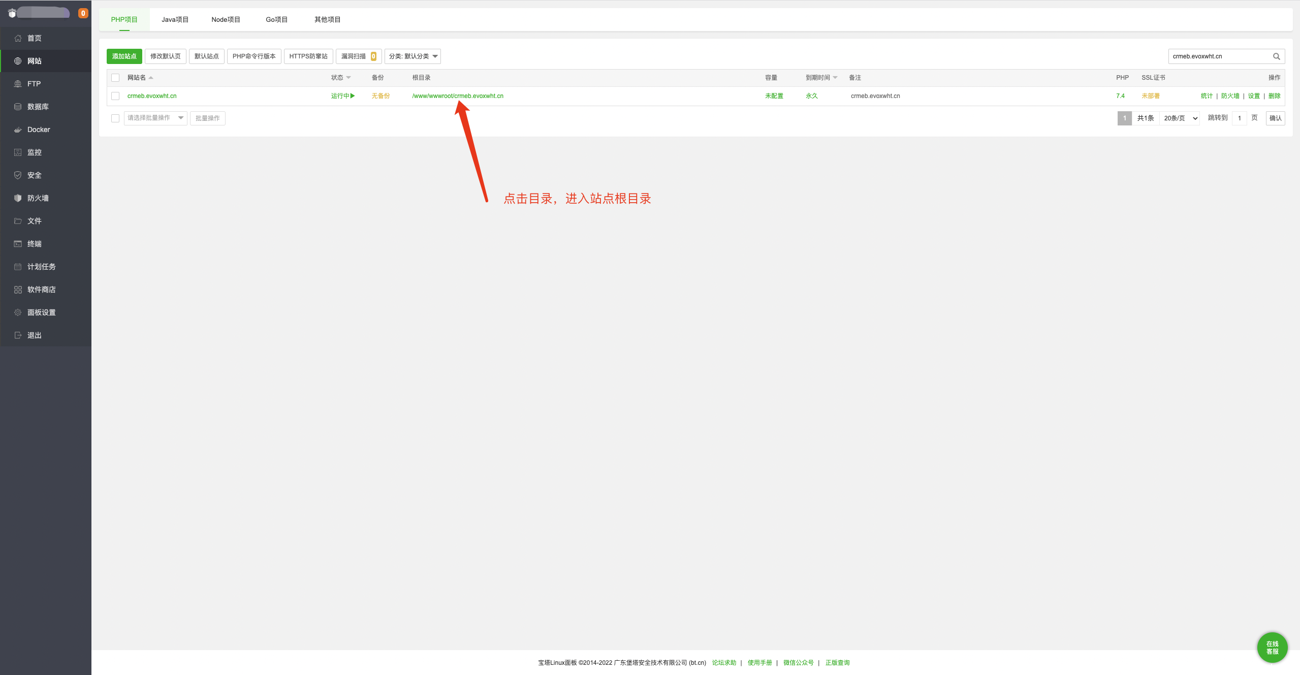2.点击目录,进入站点的根目录