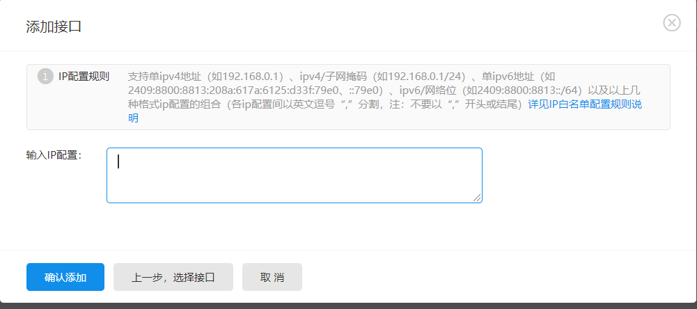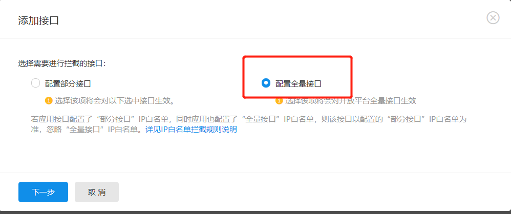 1、配置接口访问白名单,验证短信完后如下图 , 勾选 配置全量接口
