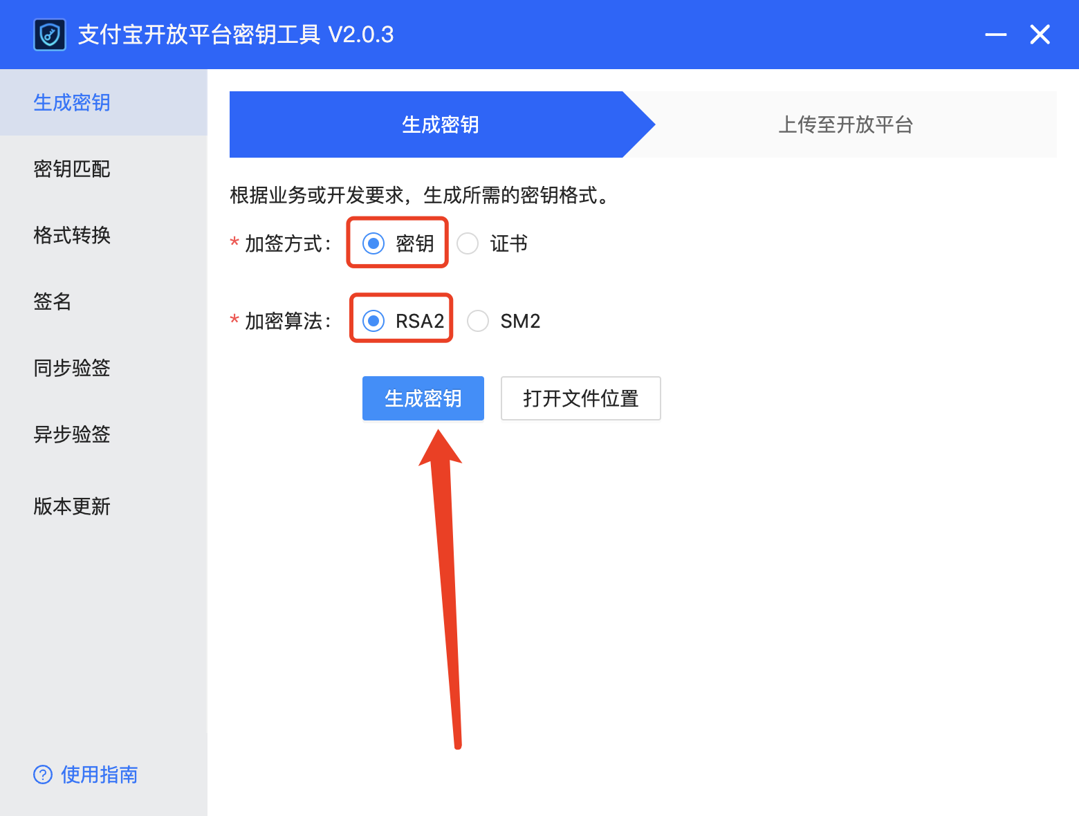 6、打开[支付宝开放平台助手],勾选以下选项,点击生成