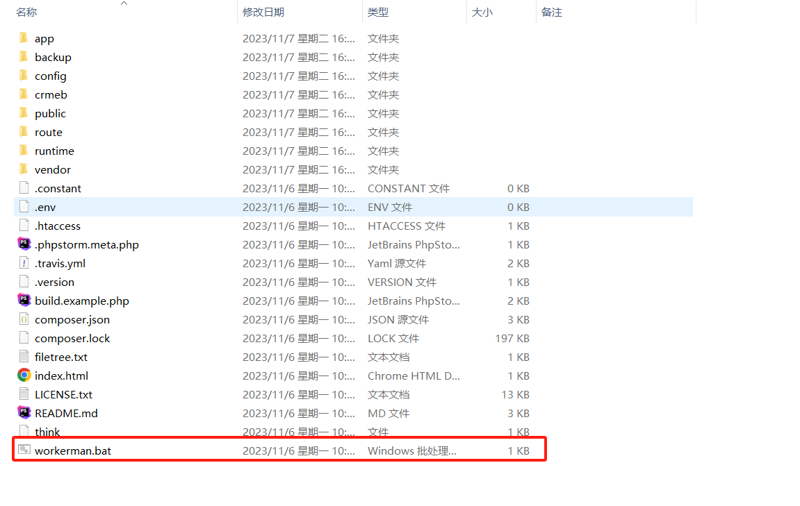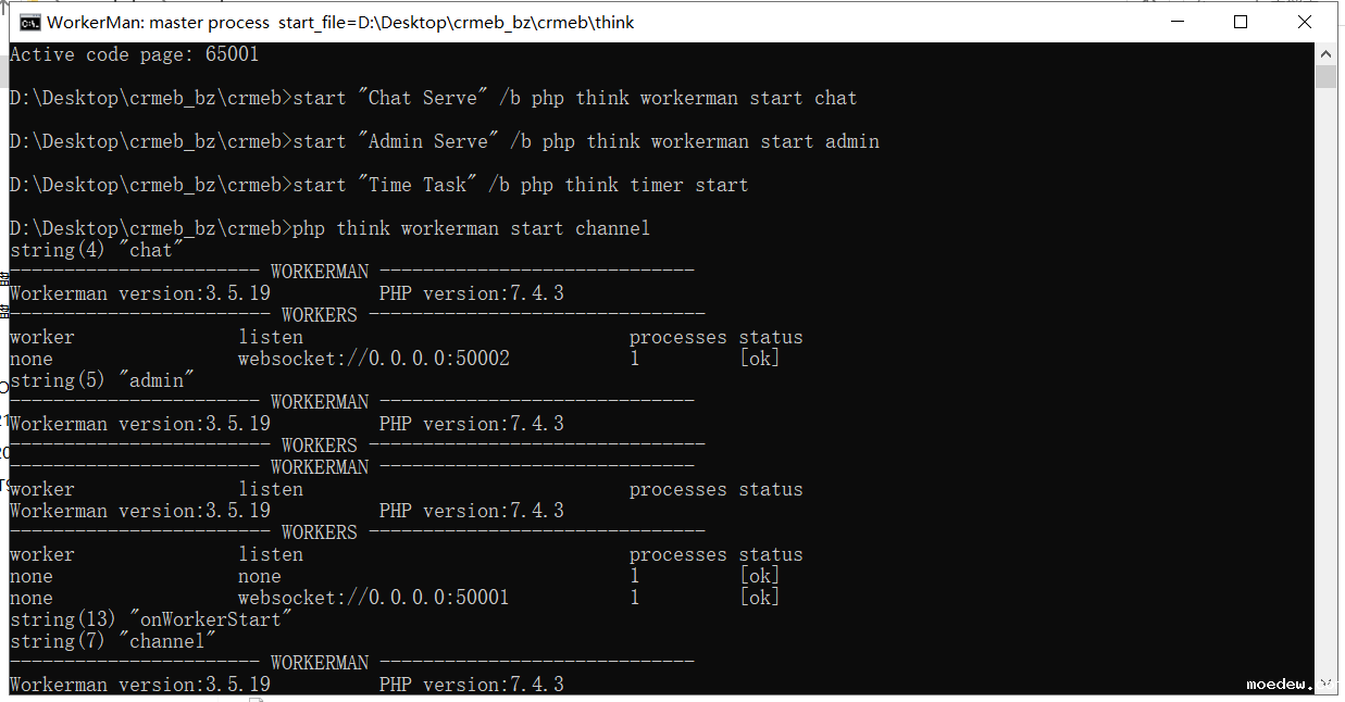 执行crmeb目录下面的workerman.bat