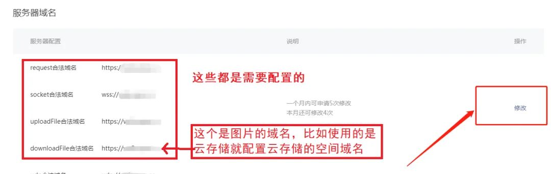 3、检查合法域名是否配置(合法域名必须为你当前小程序使用的域名,差一点都不行)