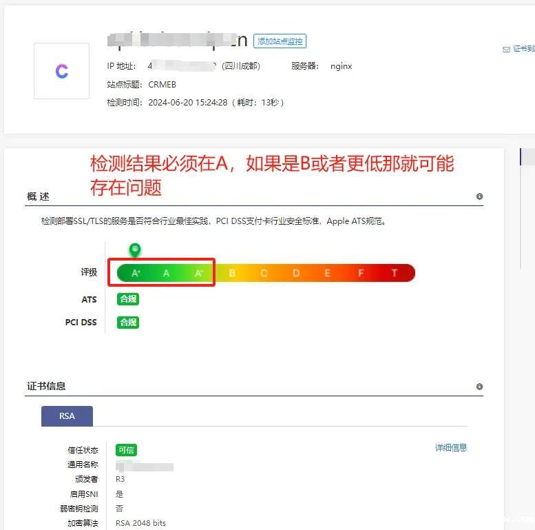 2、检查ssl证书是否正常,用这个工具检测:https://myssl.com/ssl.html