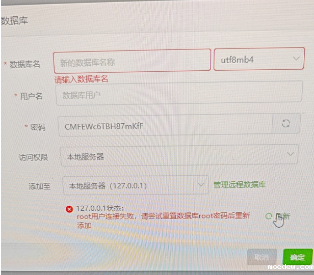 root用户连接失败,请尝试重置数据库root密码后重新添加