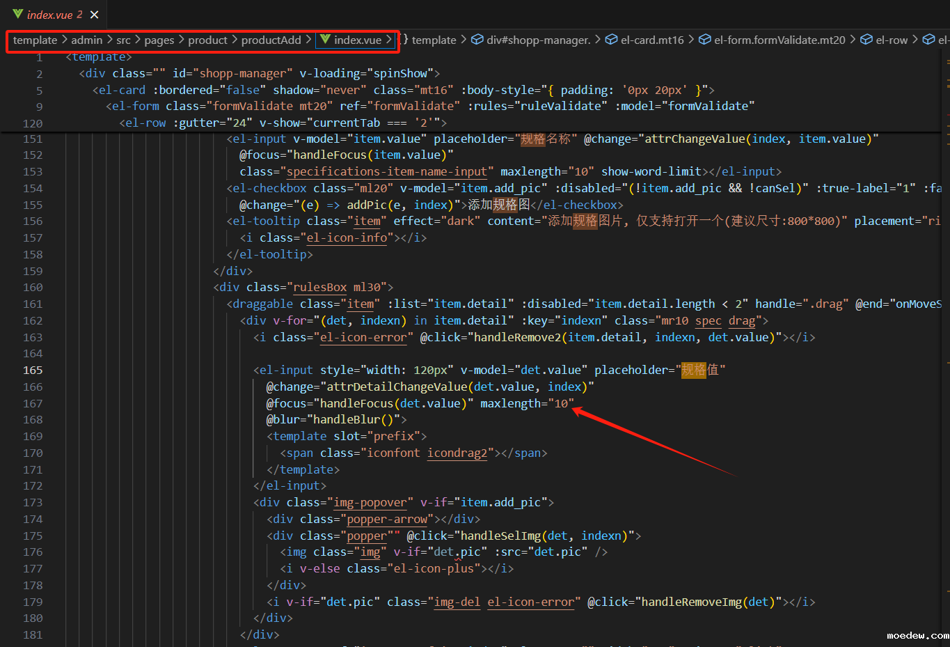 文件地址:template/admin/src/pages/product/productAdd/index.vue