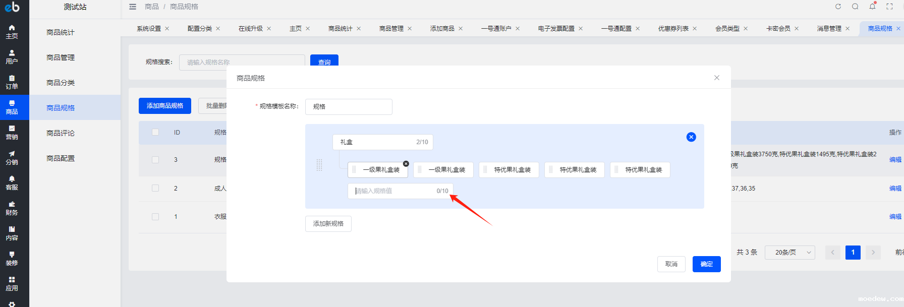 修改商品规格10个字长度限制