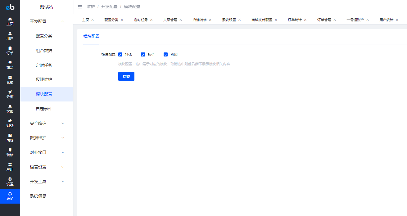 这里的选项没选的时候营销里面就不显示对应的内容,需要显示的就选上并保存