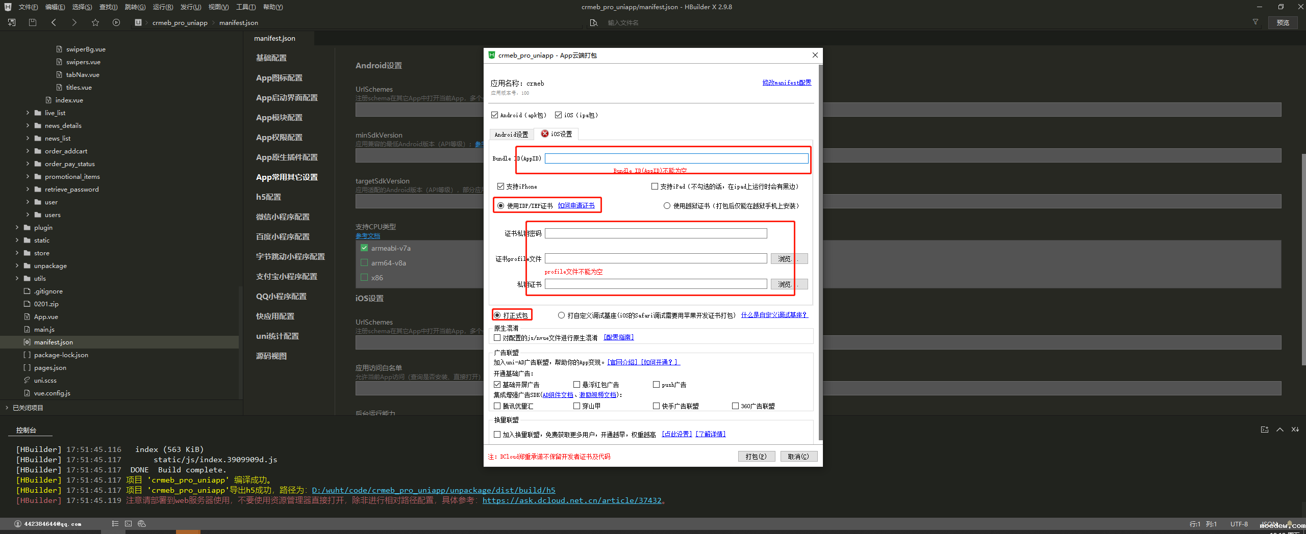 发行-原生App云打包-勾选ios包
