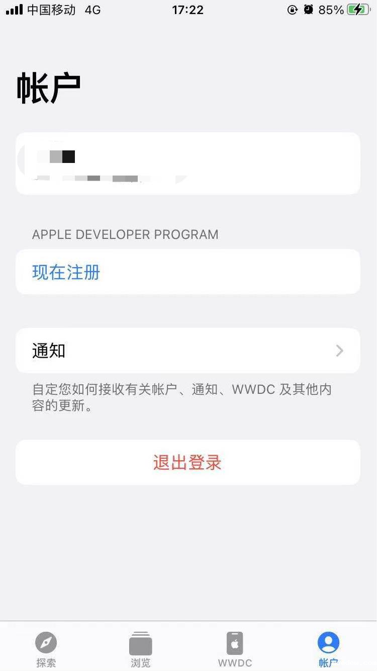 2,在手机Appstore里面搜索 Developer 下载,打开软件点击我的-现在注册,按照格式注册开发者账号