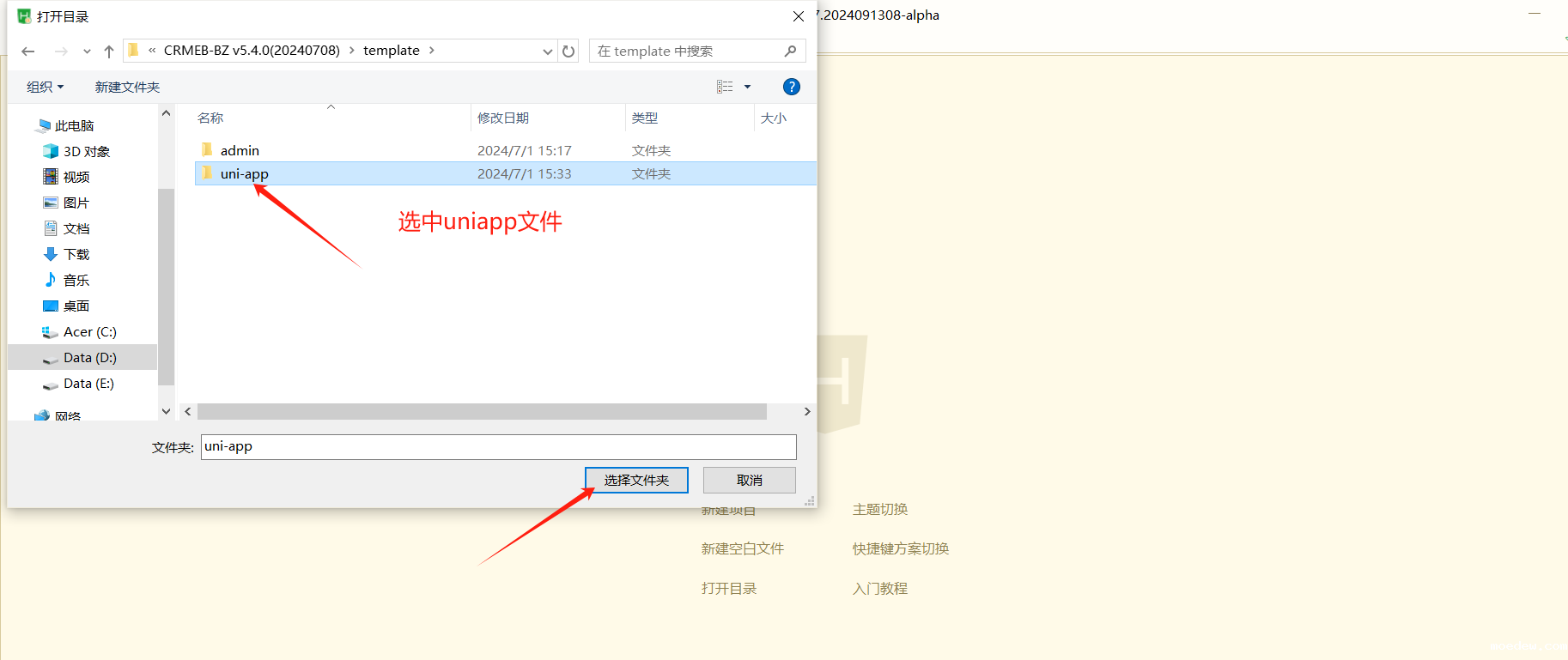 (2) 将 template/uniapp文件导入Hbuilder工具