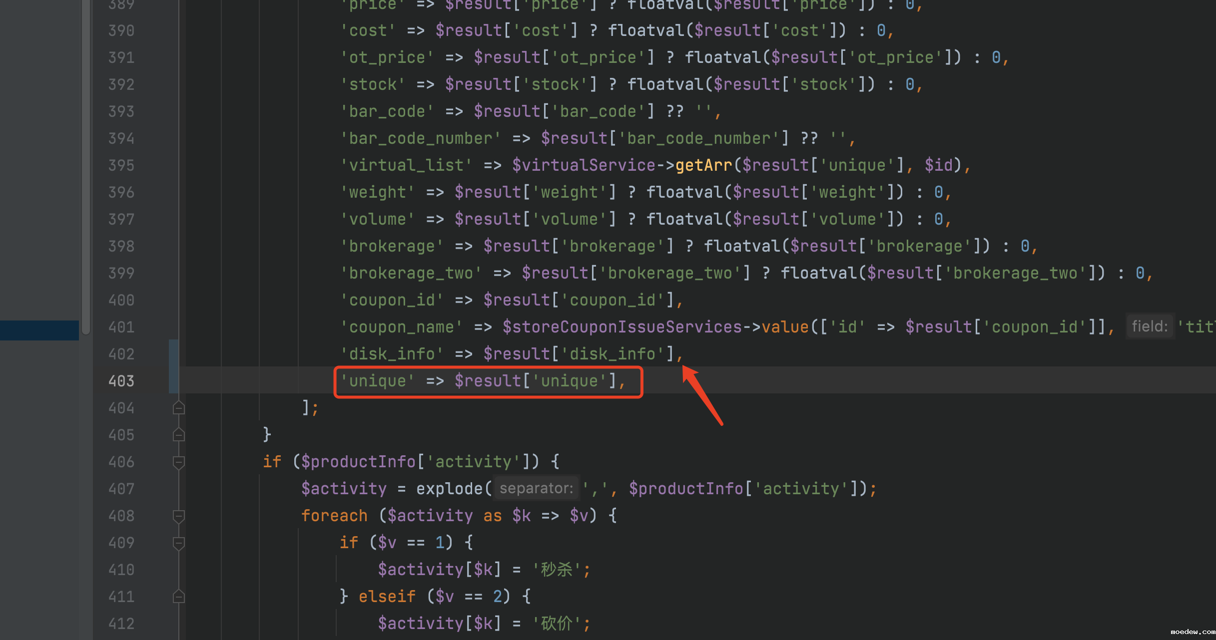 文件地址:crmeb/app/services/product/product/StoreProductServices.php 加红框内代码的和逗号