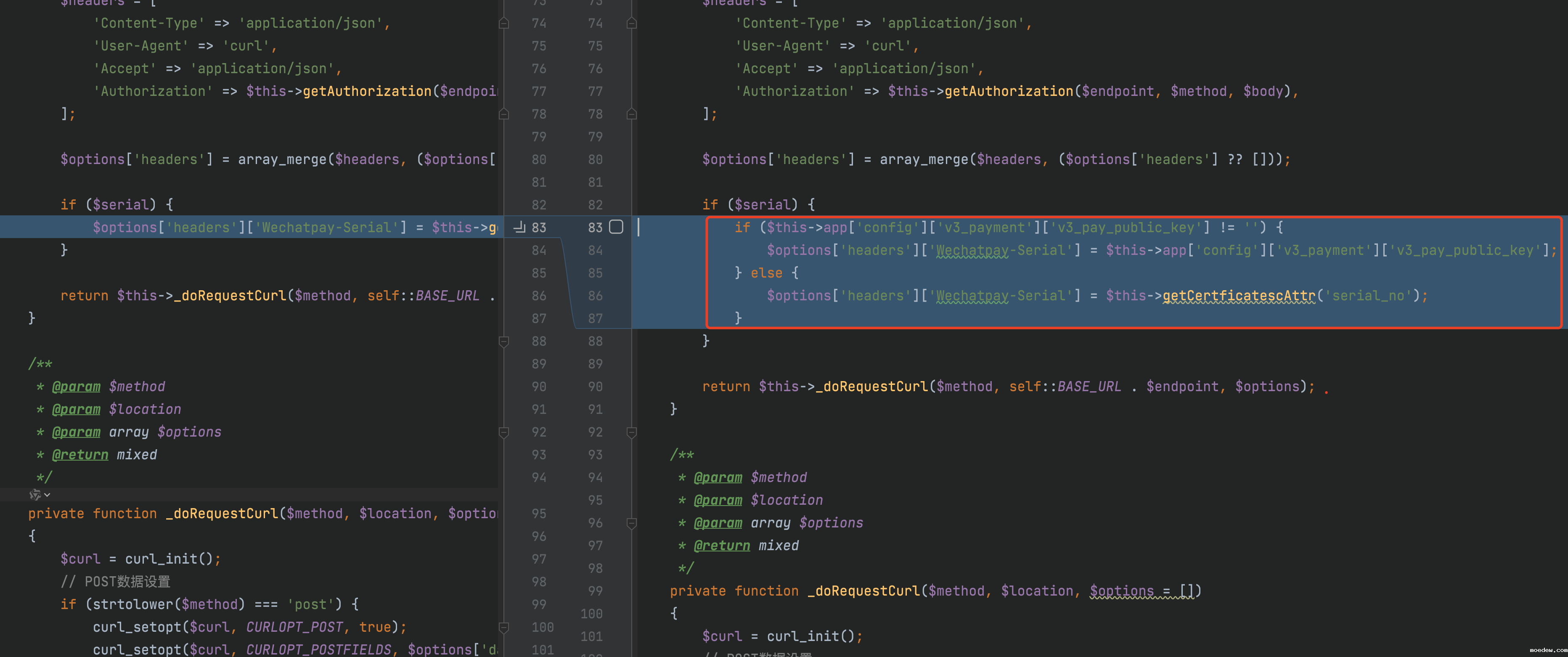 $options['headers']['Wechatpay-Serial'] = $this->getCertficatescAttr('serial_no');