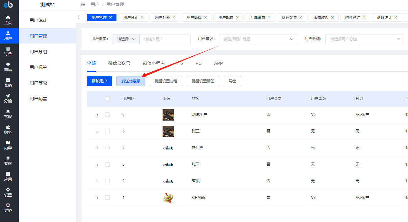 优惠券如何在后台给特定客户发放?