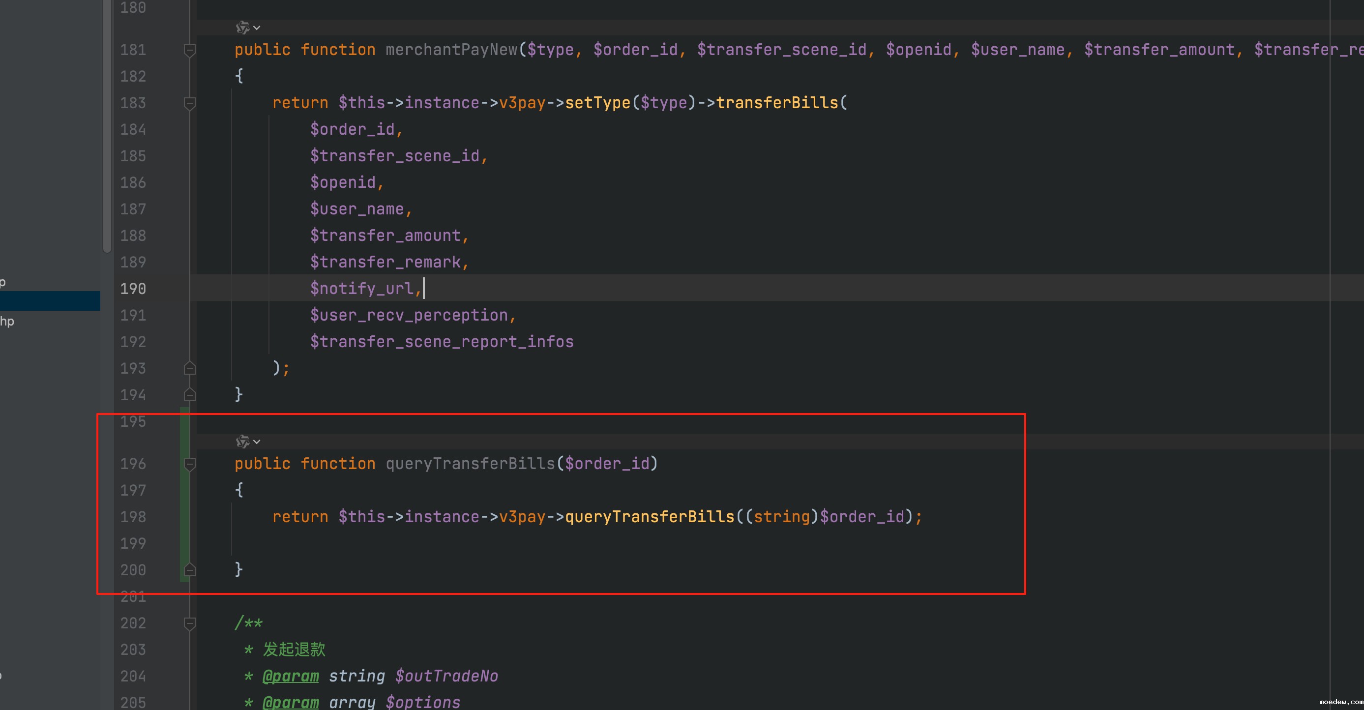 public function queryTransferBills($order_id)