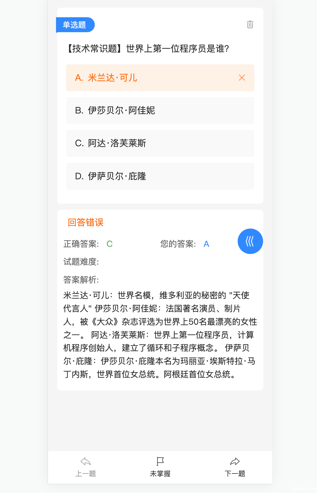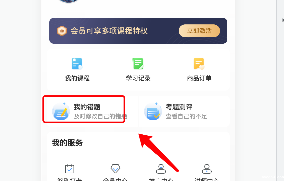 个人中心->我的错题