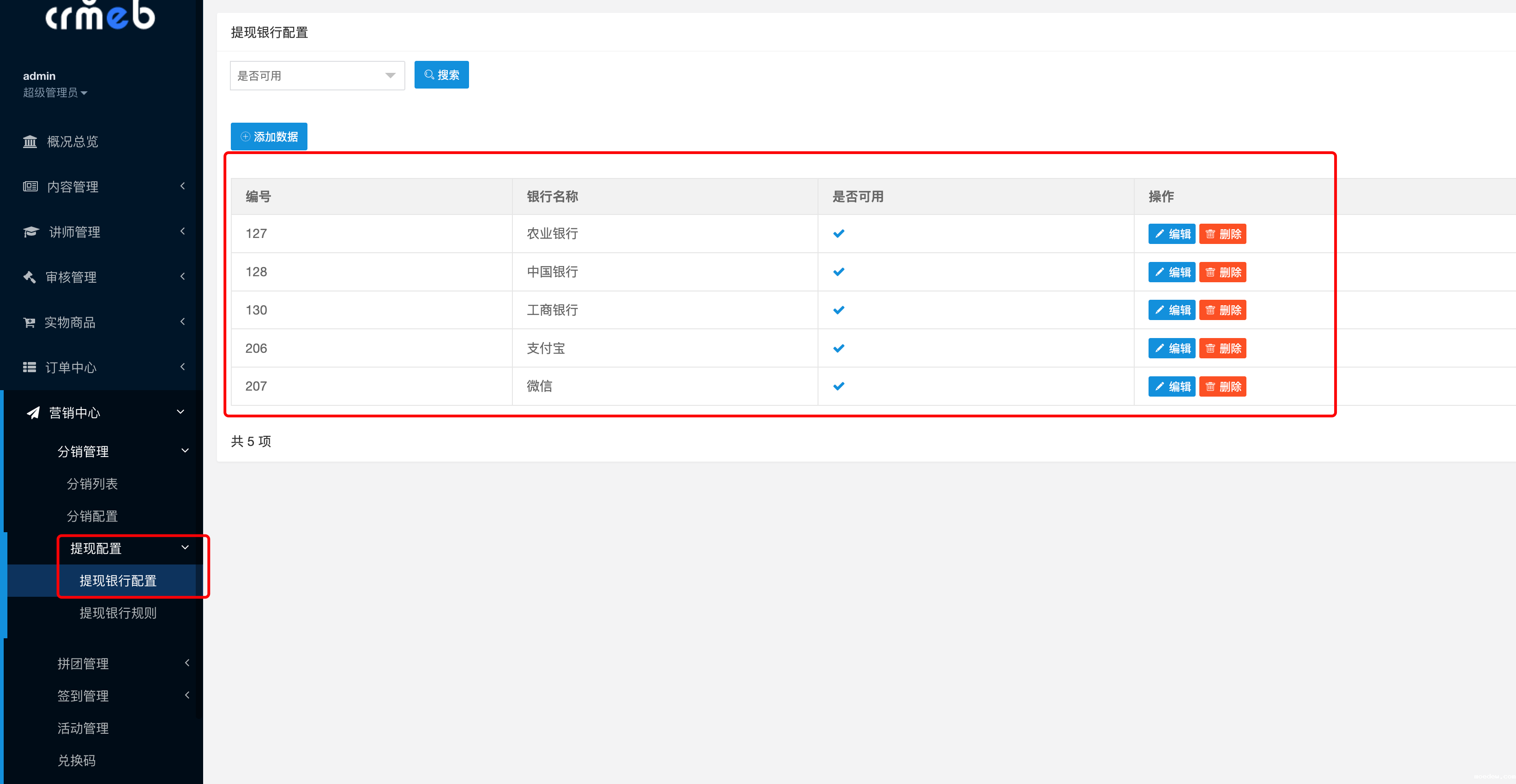 提现银行配置