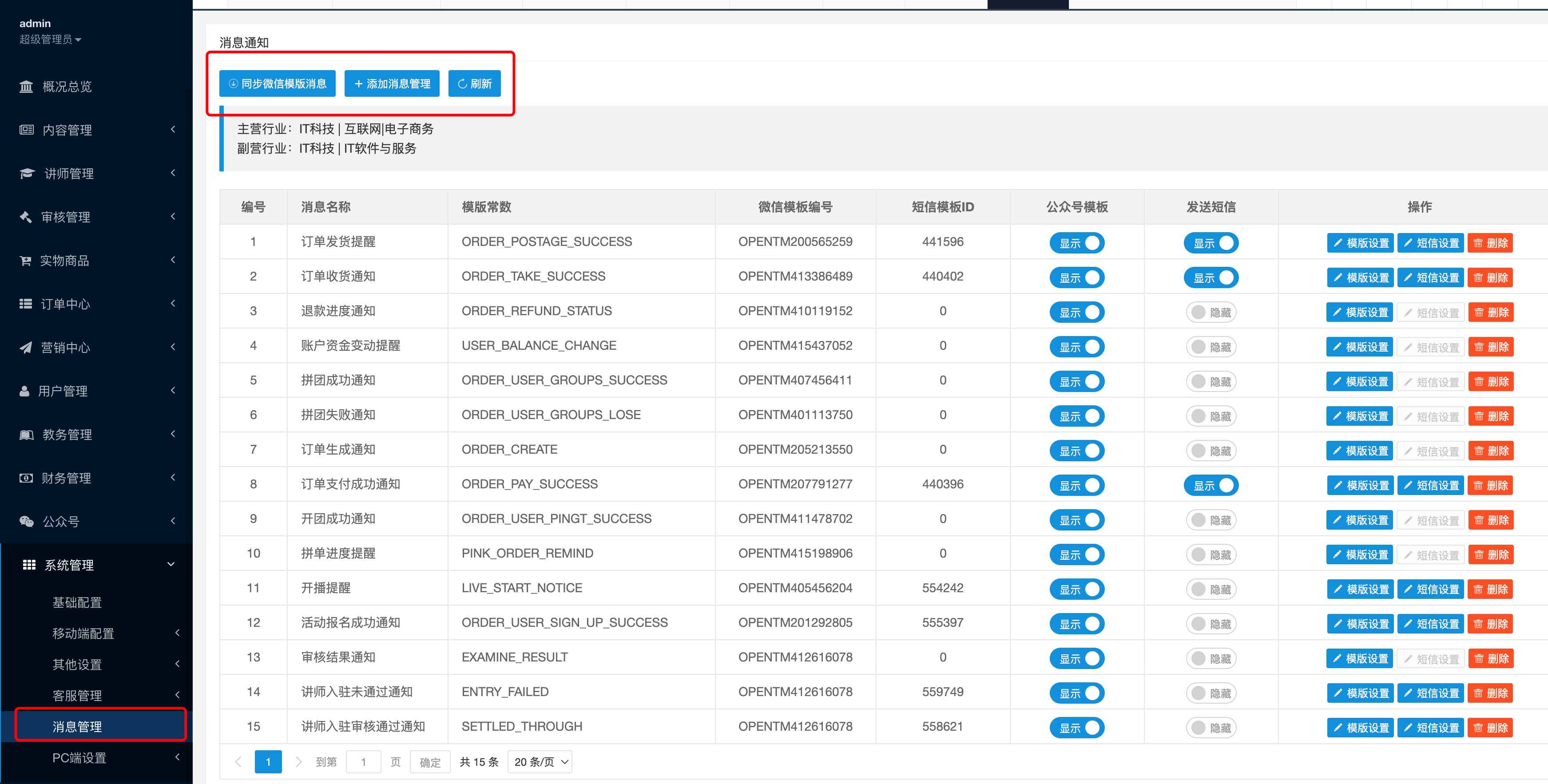 同步模版消息