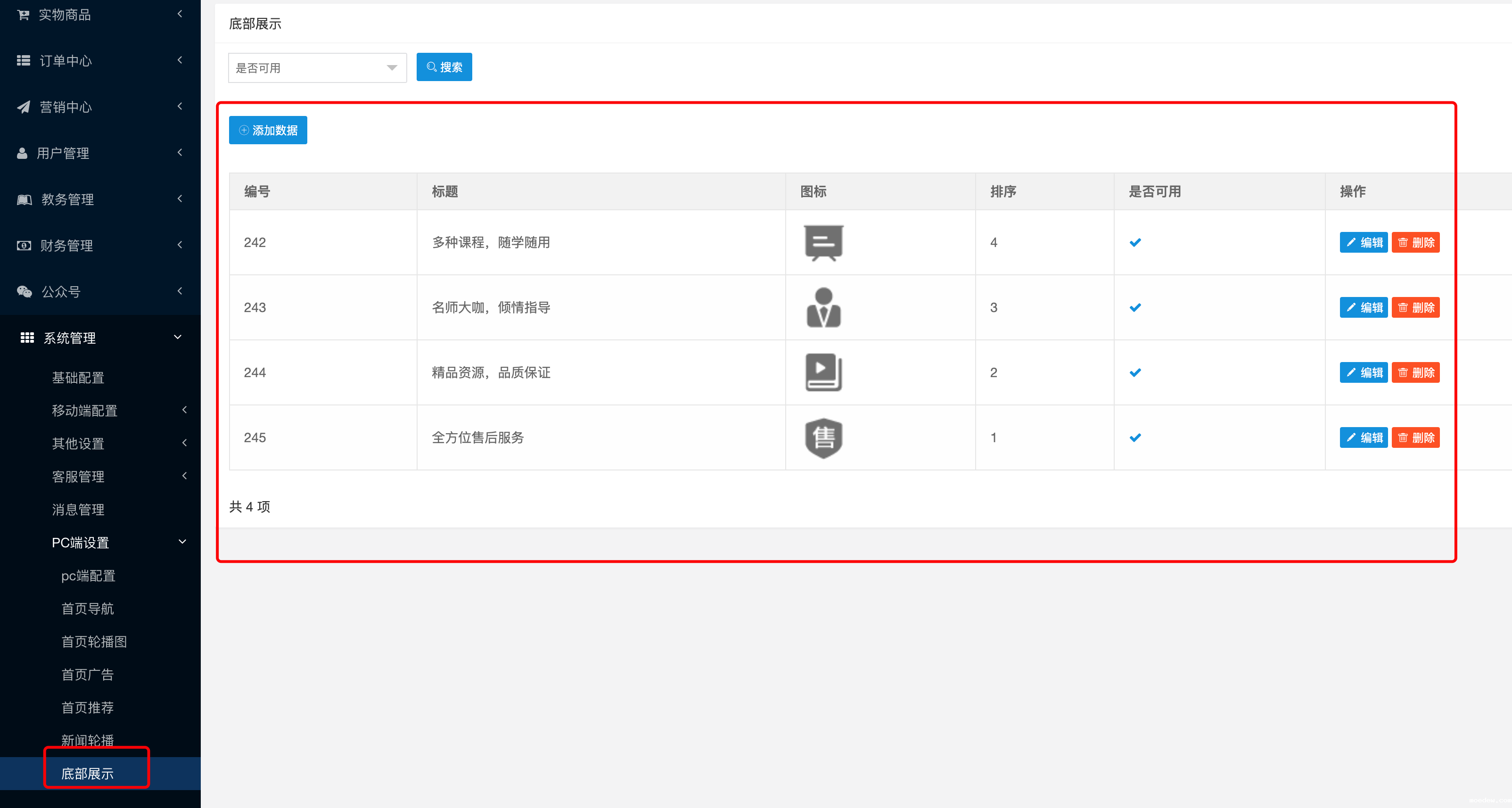 底部展示
